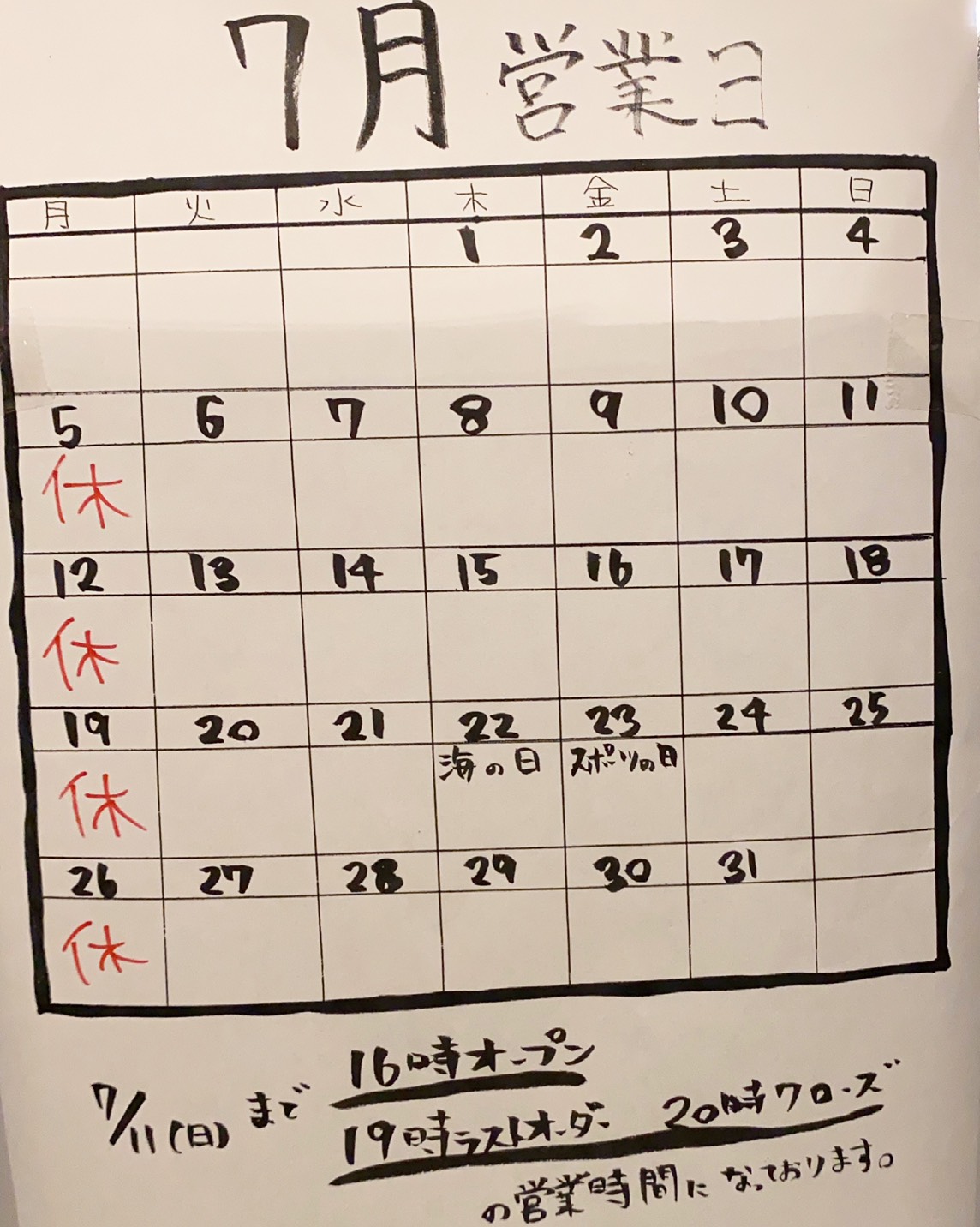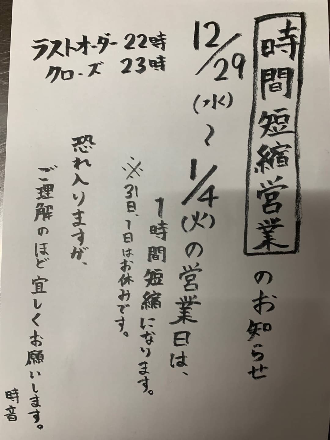 19時ラストオーダー20時閉店の営業時間になっております!!